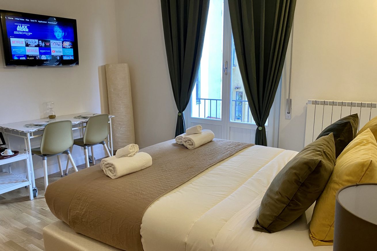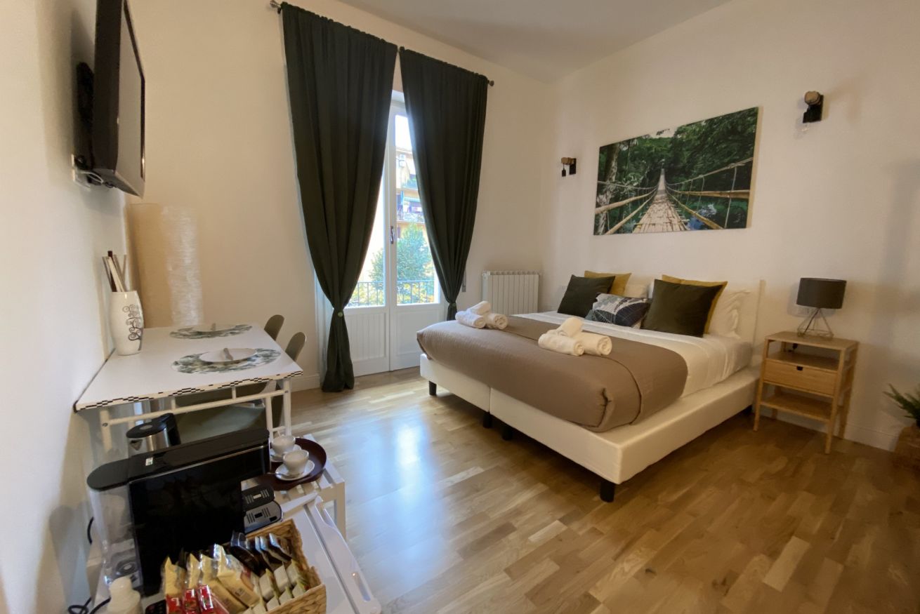 Camera matrimoniale di circa 23 mq con balcone che affaccia sul corte interna, con bagno privato.